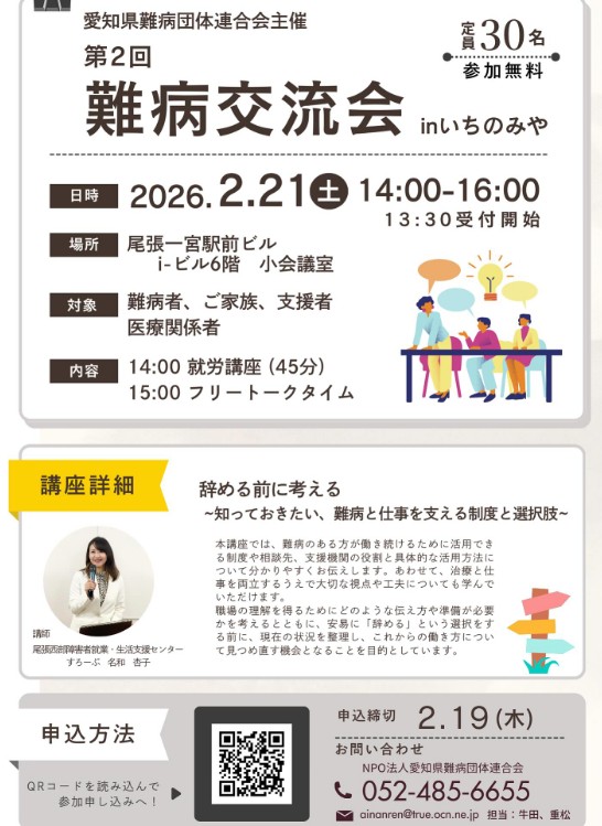 イベント イベント oku51192222 2026年2月11日 第2回 難病交流会inいちのみや 令和7年度 難病ピアサポーター養成講義 25周年記念大会 ALSの療養の知恵袋 WEBサイト公開 第3回 難病カフェじょうさい ナースコールケアカレッジ介護職員任者研修通学コース